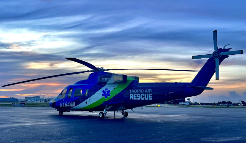 Fixed-wing air ambulances, the traditional standard, often require patients to be brought to airports and can take eight to 36 hours to arrive. Tropic Air Rescue’s Sikorsky S-76 helicopters launch directly to the scene, staffed with certified trauma paramedics, nurses, and pilots.